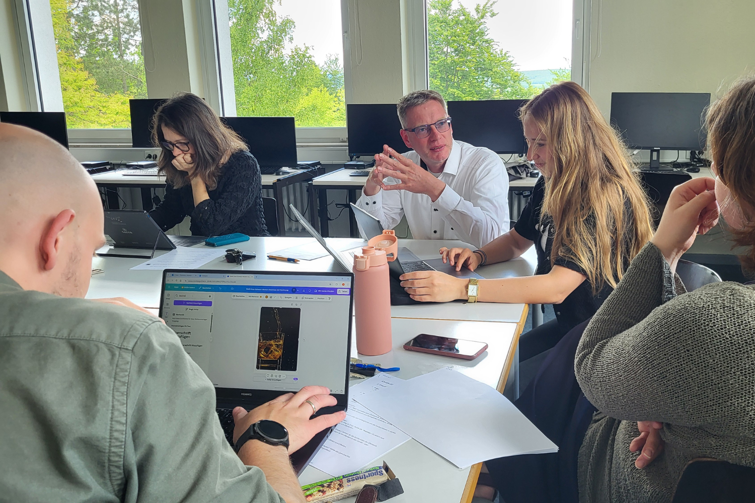 Dieses Potenzial von Canva nutzen die Lehrkräfte und Schülerinnen und Schüler des seit Jahren digitalisierten Freiherr-vom-Stein-Berufskollegs schon lange im Unterricht, beispielsweise für anschauliche Grafiken im E-Commerce oder kreative Plakate im Büromanagement. Dass es dennoch immer Neues zu entdecken gibt, zeigte die gestrige interne Fortbildung, organisiert von Verena Malecha und Michael Drawe. Rund 27 Prozent des Bad Oeynhausener-Kollegiums nahmen teil, um die erweiterten Lehrerfunktionen der Vollversion – wie den Klassenmodus – kennenzulernen und ihre digitalen Werkzeugkästen weiter zu füllen.